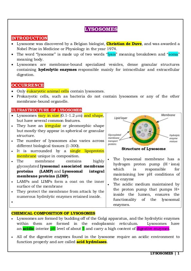 Lysis- digestive or loose soma- body are small vesicles which are bounded by a single membrane and contain hydrolytic enzymes in the form of minute crystalline or semi crystalline granules of 5-8 nm. A lysosome is a membrane-bound organelle found in nearly all a. Lysosomes were discovered in 1949 by a Belgian cytologist Christian de Duve.